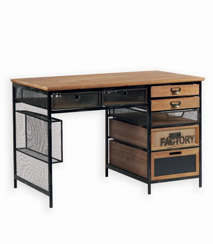 Bureau bois & métal 7 tiroirs WENDY