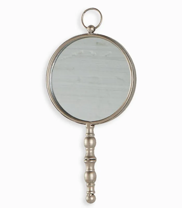 Miroir rond métal argenté avec poignée