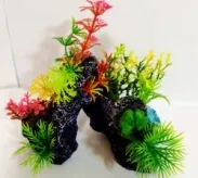 Décoration d’aquarium Rochers avec plantes 14 x 9 x 11 cm