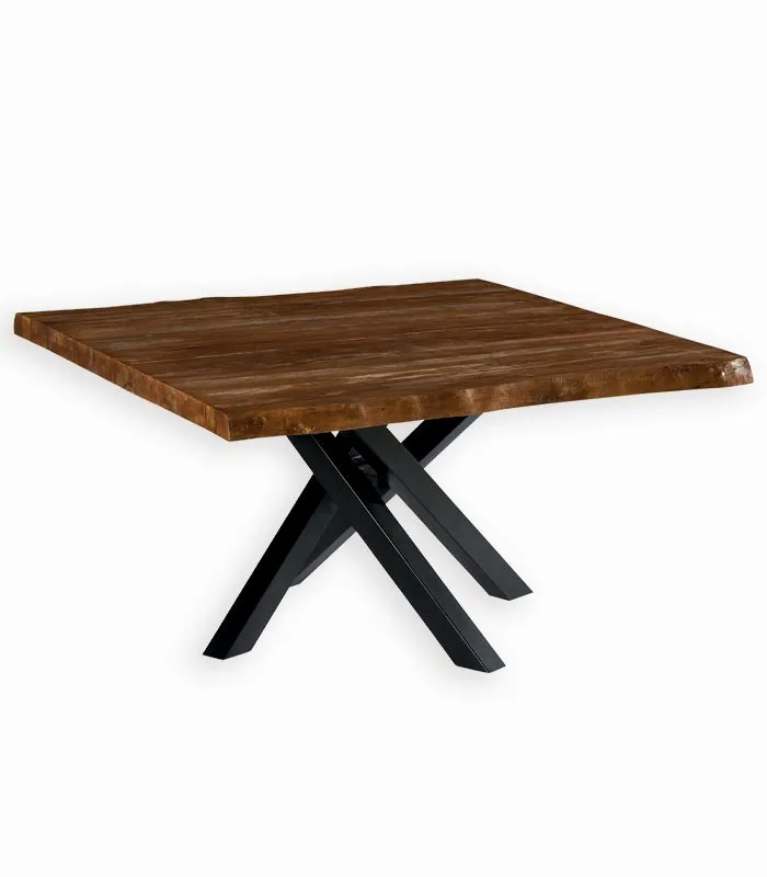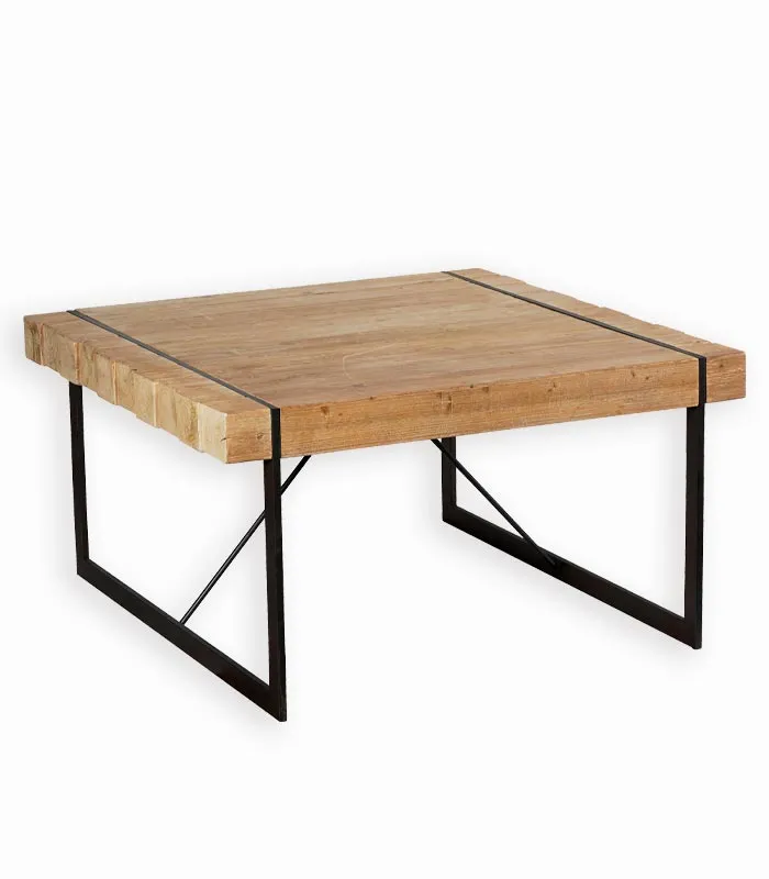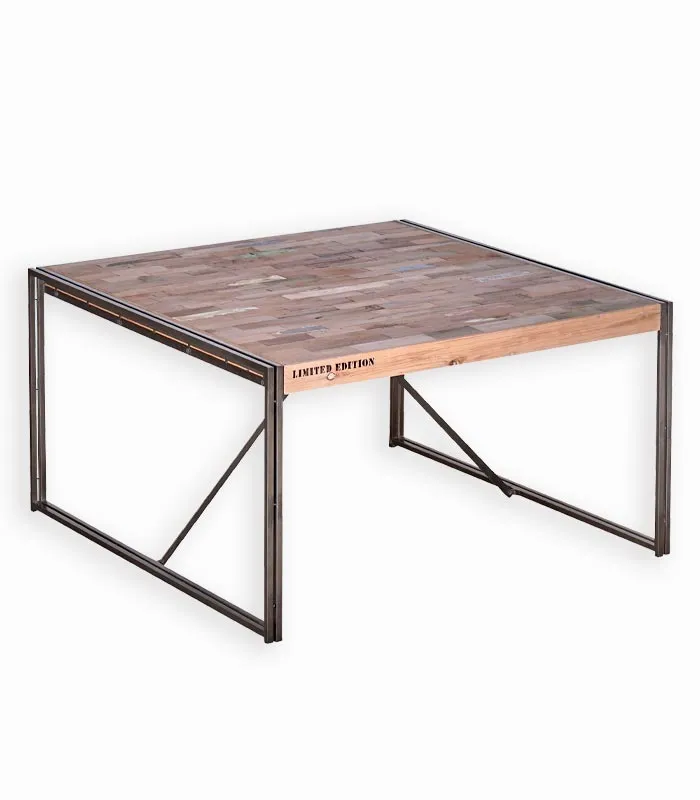 Table carrée bois de bateau et métal SAMBA