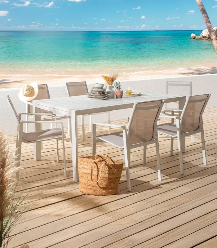 Table de jardin extensible alu blanc INHACA