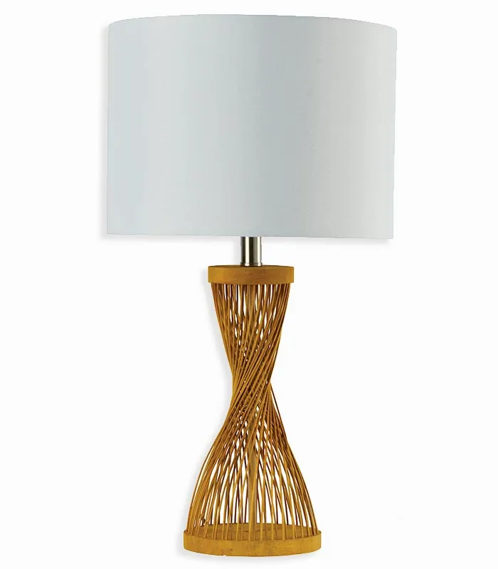 Lampe en bambou avec abat-jour en tissu.