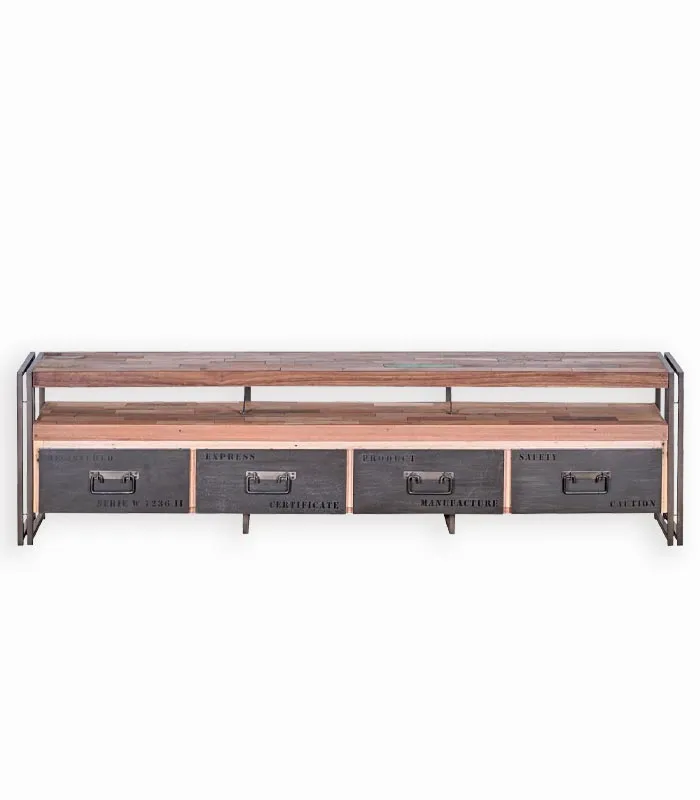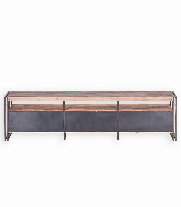 Meuble TV Samba en bois de bateau recyclé et métal.