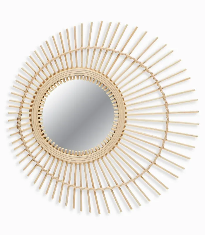 Miroir rond métal argenté avec poignée.